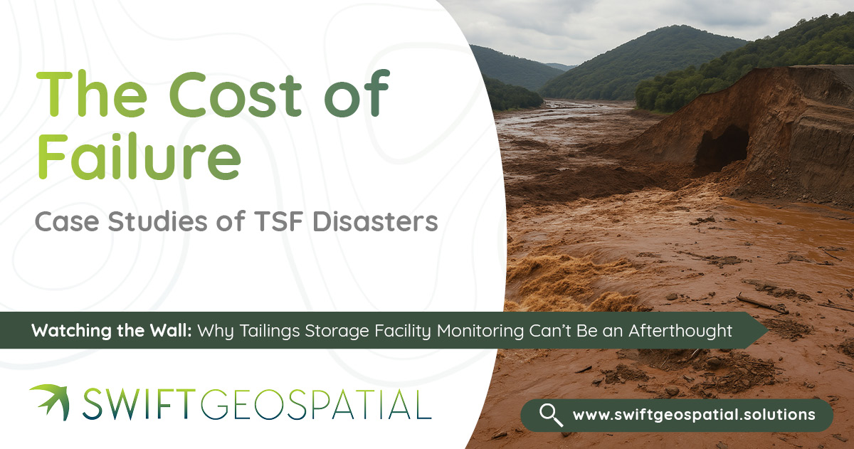 Tailings Storage Facilities (TSFs) are among the most critical, and potentially dangerous, structures in mining. With several major disasters in recent history, mine owners must prioritise TSF monitoring to protect lives, land, and operations. In this post, Swift Geospatial explores how satellite technology provides a smarter, safer, and more cost-effective alternative to traditional aerial flyovers, delivering early warnings and consistent data, no matter how remote the site.