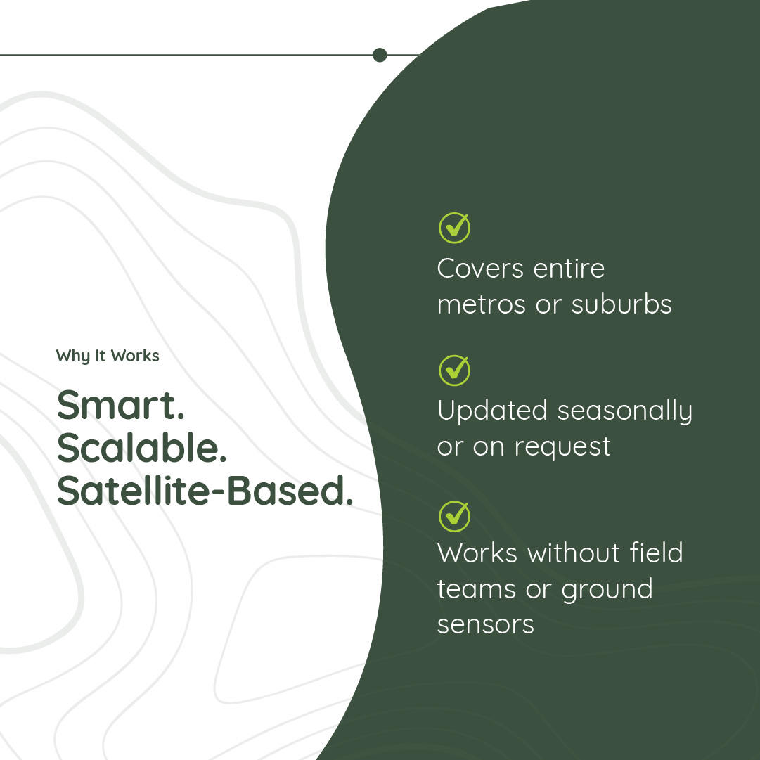Satellite-based tree counting replaces fragmented and infrequent ground surveys with a reliable, updatable source of insight. It enables municipalities to understand the structure and condition of their urban canopy at a resolution and scale that supports informed planning, risk management and long-term environmental resilience.