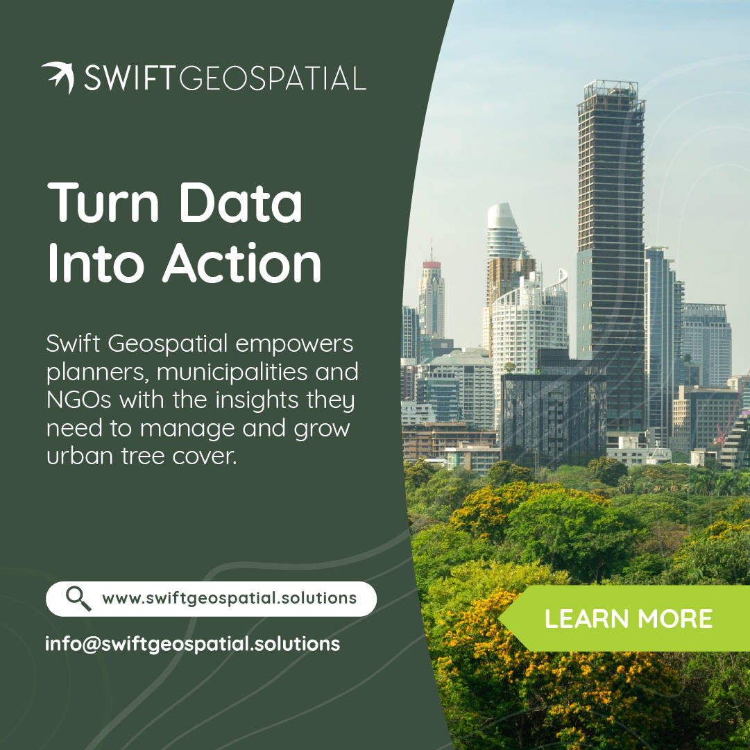 Swift Geospatial’s integrated solution is transforming how cities plan, monitor and grow their urban forests. Traditional inventories that once relied on slow, labour-intensive ground surveys can now be completed and updated using satellite imagery, artificial intelligence and cloud-based analytics. The time from data acquisition to insight has been reduced from months to days, giving urban managers a more agile and cost-effective approach to green infrastructure management.